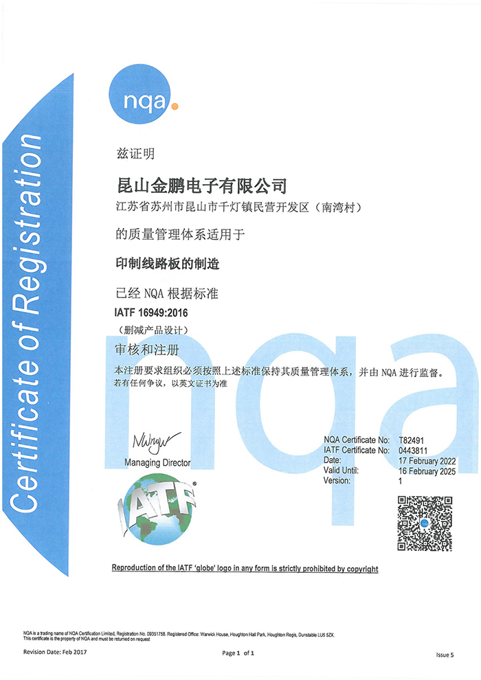 昆山金鵬電子有限公司是一家擁有20余年印制電路板(PCB)制造經(jīng)驗(yàn)的高新技術(shù)公司,公司成立于2002年,注冊(cè)資本1.2億元,占地面積66000平米,建筑面積35000平米,現(xiàn)有員工500余人。公司已通過(guò)ISO14001環(huán)境管理體系認(rèn)證、ISO9001及IATF16949質(zhì)量管理體系認(rèn)證,PCB及PCBA產(chǎn)品均已通過(guò)CQC認(rèn)證、美國(guó)UL認(rèn)證及歐盟RoHS認(rèn)證。2020年銷(xiāo)售收入5.1億元,已具相當(dāng)規(guī)模,在昆山PCB制造行業(yè)排名位居前列。